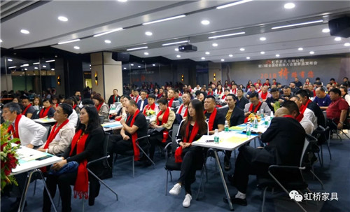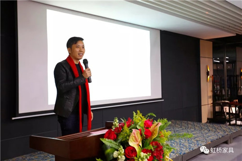 佛山市虹橋家具有限公司營銷執行總裁潘紅梅女士首先致辭,致辭中,潘總談到在新的一年中將對鐵桿老客戶有更多優惠政策,以回饋多年來一直支持虹橋的老客戶們;并號召伙伴們能以市場為導向,以消費者為中心,在廣闊的營銷道路上越走越遠。